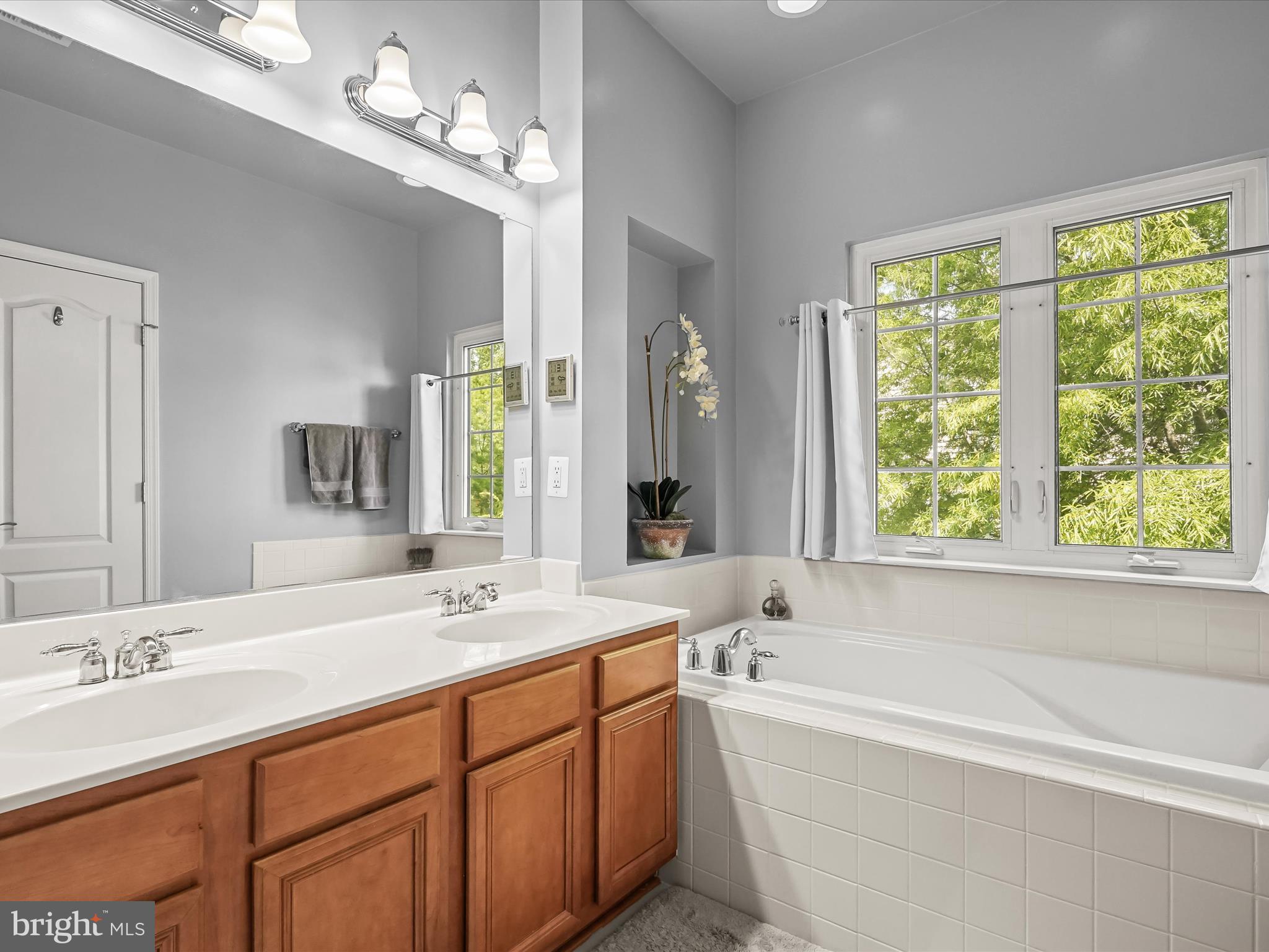 Oversized windows on all three sides bathe this home with an abundance of natural light on all three levels. The two-car garage, with thoughtful built in Elfa storage opens up into the main level family room/fourth bedroom with attached full bathroom. A cozy gas fireplace is a bonus, as is the direct outdoor access to the fully fenced backyard for Fido. The second level is the crown jewel, with the aforementioned gourmet kitchen, custom butler's pantry and new hardwood floors throughout. Right around the corner, you can also enjoy your newer private deck for morning coffee--it feels like you're living in the trees! Upstairs, you'll find three spacious bedrooms, two cheery full bathrooms and a walk in closet in primary suite. Hallway laundry closet with new clothes washer/dryer is the cherry on top!
