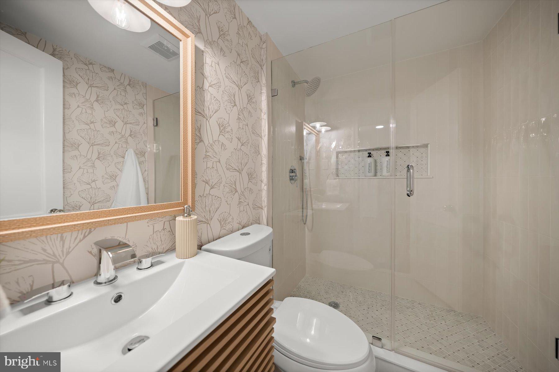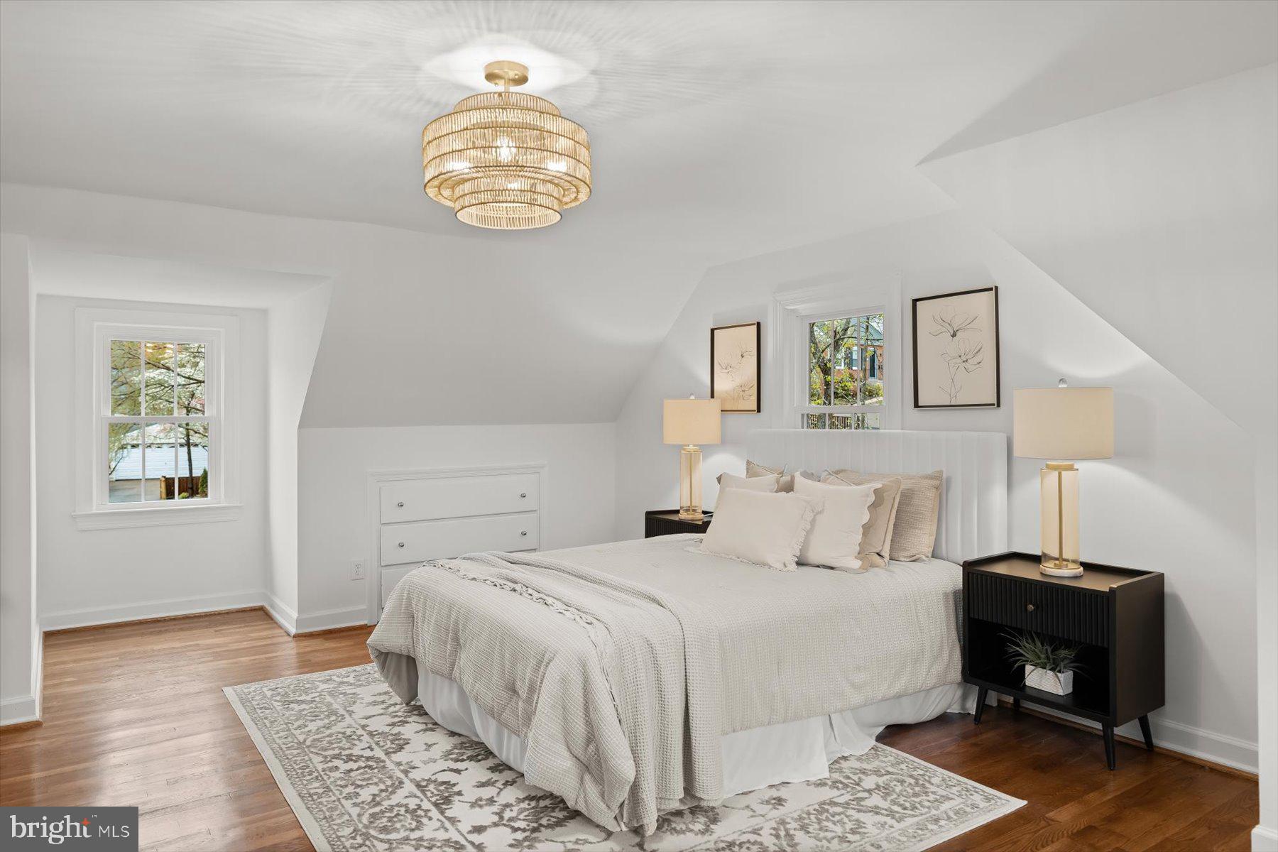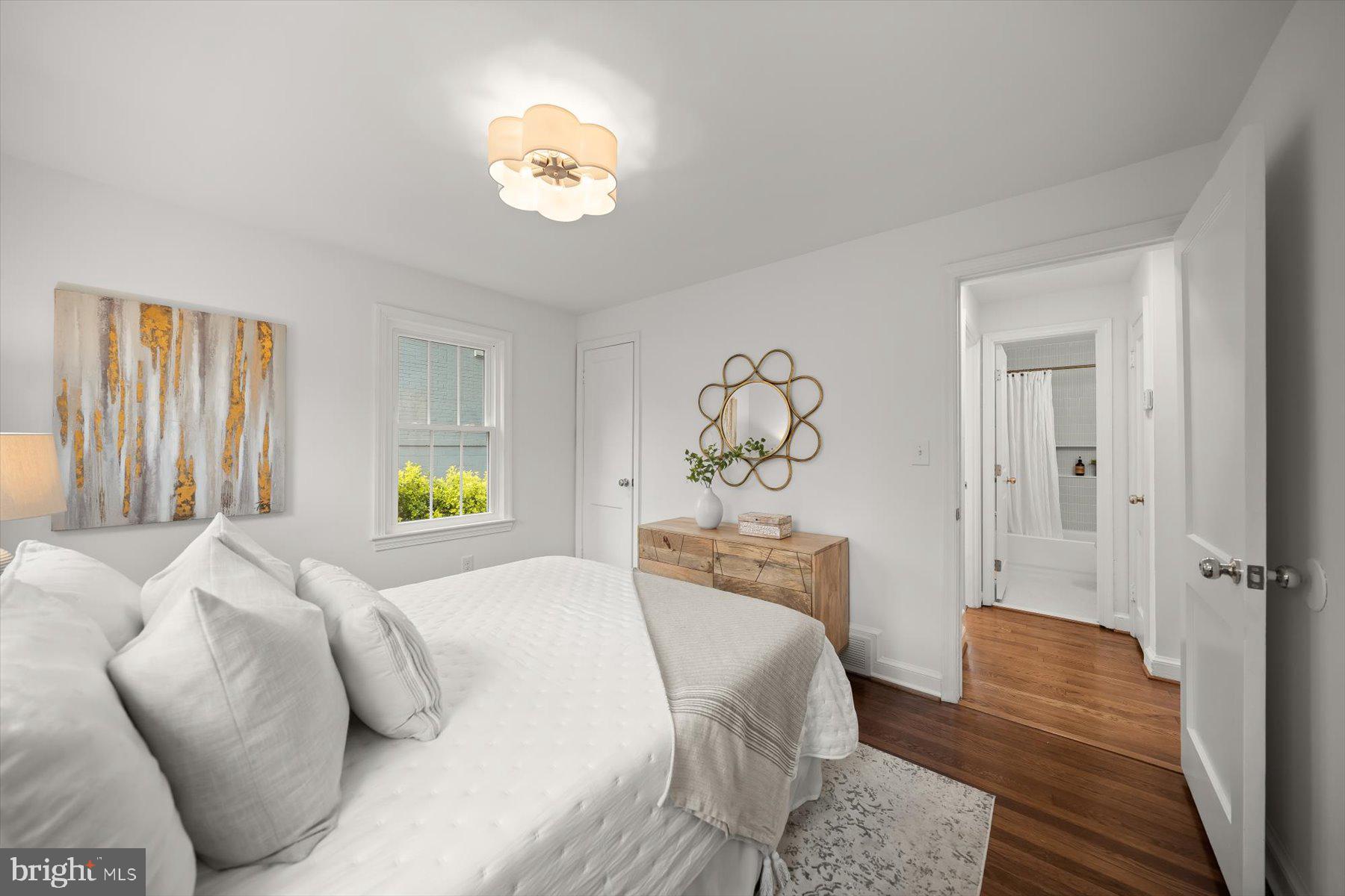 Thanks to the home's full rear dormer, there's a spacious primary ensuite bathroom with luxe frameless glass door shower, vanity and wallpaper, and a bonus second bedroom upstairs, which would make a terrific office or nursery. Downstairs another two large bedrooms. This spacious home, with over 2,000 sq ft of living space; 4-bedrooms, 3-full bathrooms, one on each level has the perfect LOCATION, LOCATION, LOCATION to match. Less than one mile to the new Whole Foods in downtown Falls Church; just three blocks to shopping, restaurants, coffee and more. With terrific Fairfax County Schools and a spacious interior lot (6,600 sq ft), this property is must see.