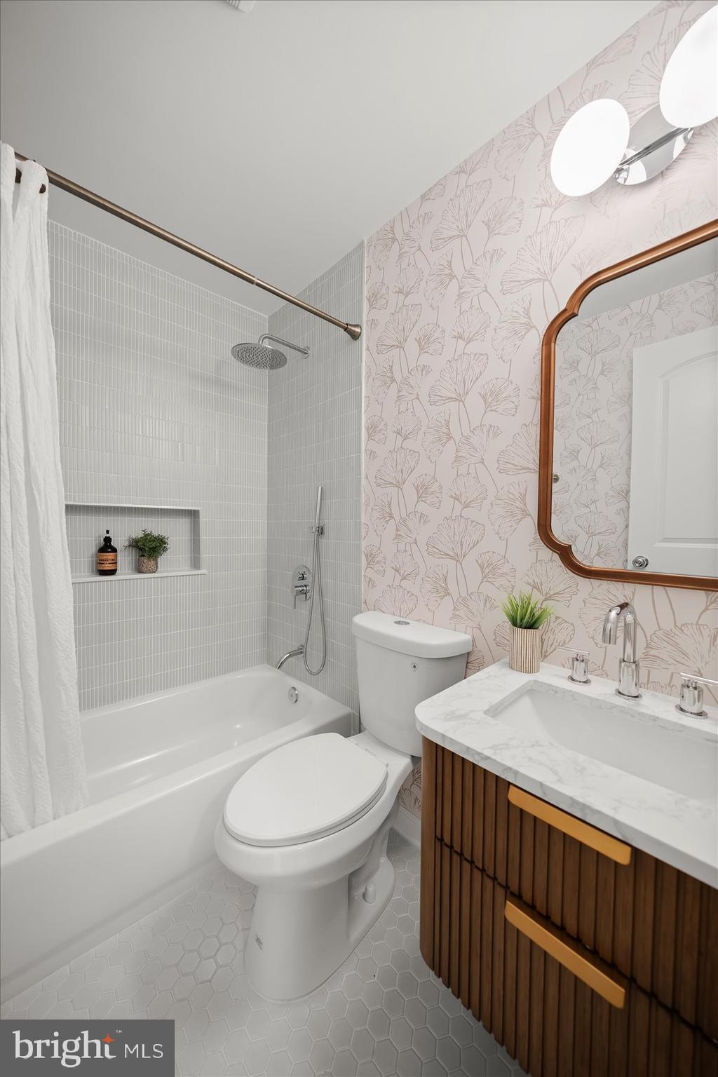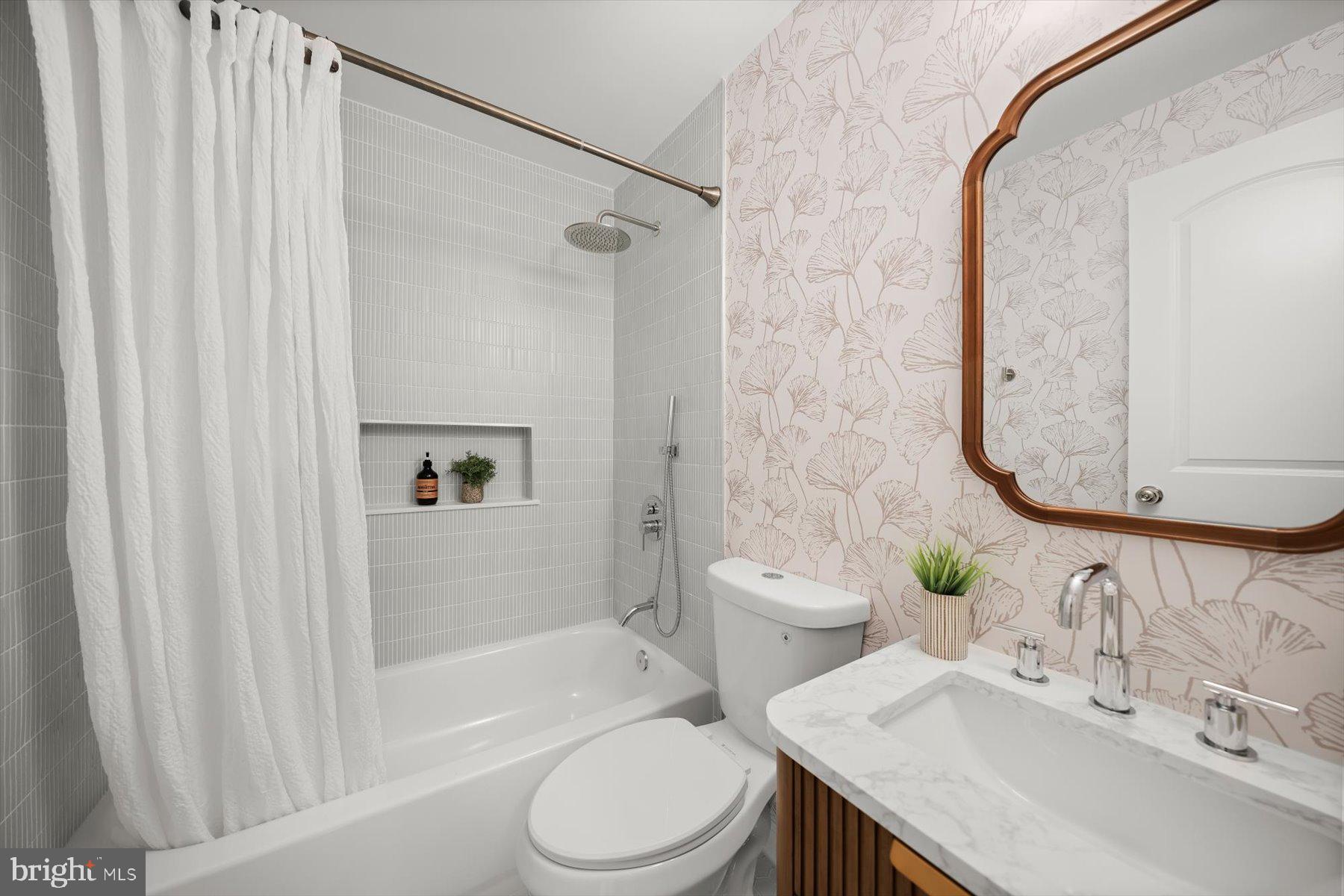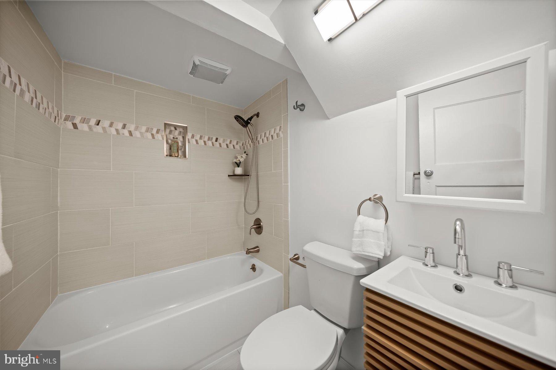 Thanks to the home's full rear dormer, there's a spacious primary ensuite bathroom with luxe frameless glass door shower, vanity and wallpaper, and a bonus second bedroom upstairs, which would make a terrific office or nursery. Downstairs another two large bedrooms. This spacious home, with over 2,000 sq ft of living space; 4-bedrooms, 3-full bathrooms, one on each level has the perfect LOCATION, LOCATION, LOCATION to match. Less than one mile to the new Whole Foods in downtown Falls Church; just three blocks to shopping, restaurants, coffee and more. With terrific Fairfax County Schools and a spacious interior lot (6,600 sq ft), this property is must see.
