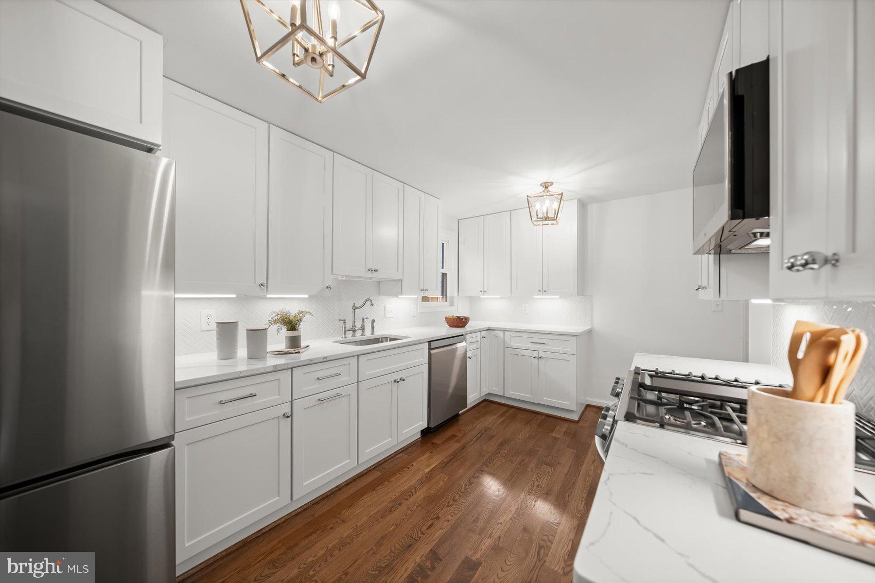 Moore Homes happily presents "Summerwind at Mason Terrace," a graceful reimagination of a classic Falls Church Cape Cod home in the tree-lined Jefferson Village neighborhood. Fantastically curated by Caroline Elise Interiors, this home has left you with nothing else to desire nor work on. In 2025, brand new windows (transferable lifetime warranty), new HVAC with fully transferable warranty up to 10 years for parts (gas furnace and electric A/C), new white shaker soft close kitchen cabinets with designer hardware, new quartz counters and new LG stainless steel appliances suite, two new bathrooms down to studs, new fiberglass and glass front door, new paint outside and inside, new light fixtures throughout home, new interior door hardware, new luxury vinyl tiles in the basement, new sump pump, newer hot water heater (Dec 2023). Even the architectural shingle roof and electric panel (2020) is nearly newer. Roof was replaced 2019. Solid oak floors were just finished throughout main and upper levels.