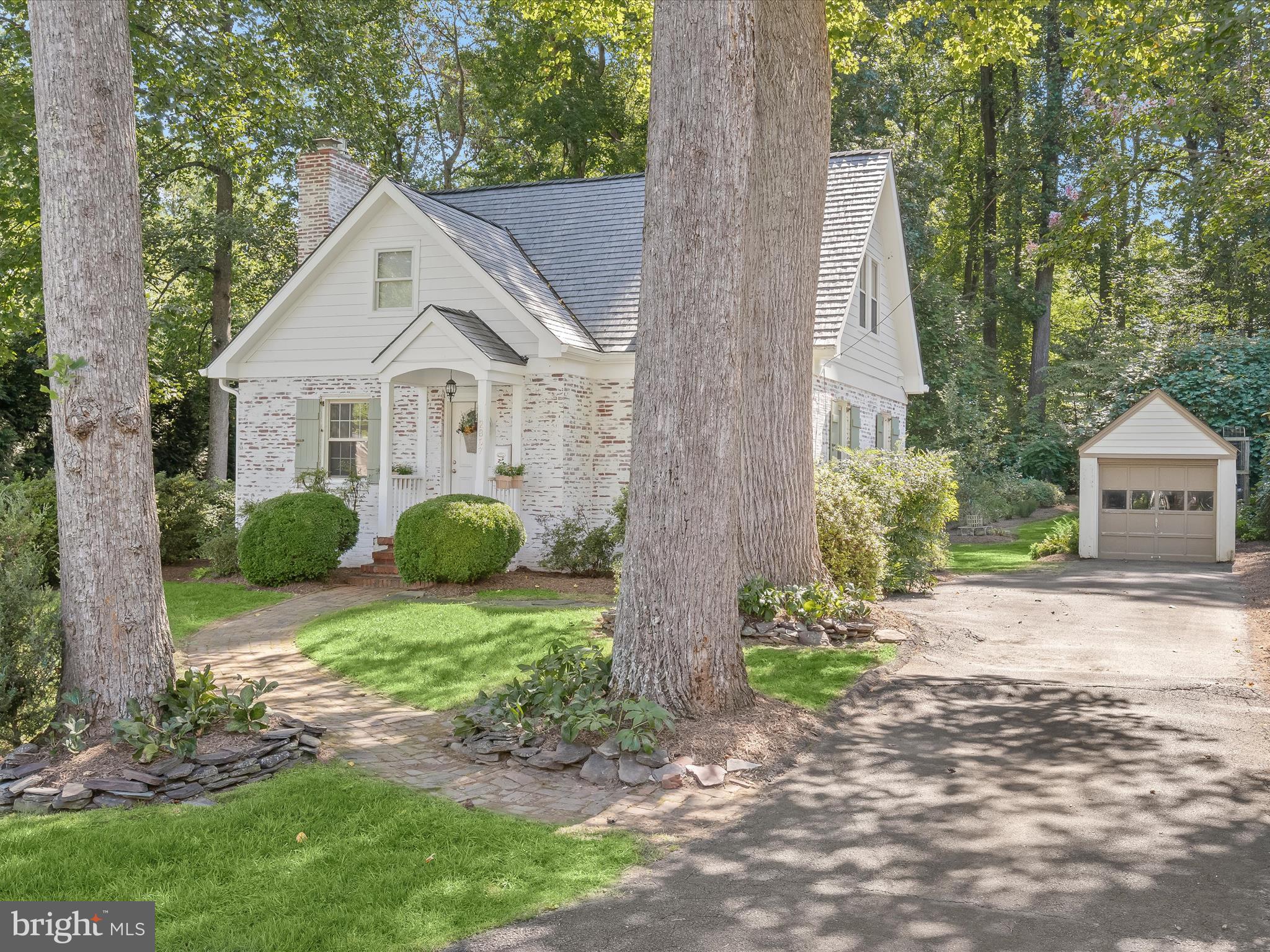 Offer Deadline is Saturday (8/17) at 5PM."Rosemary Cottage" is a stunning, architectural masterpiece on massive, forested oasis oversized lot. With over $172,000 in recent renovations, this charmer has storybook curb appeal--custom shutters, new German Schmear brick finish, new synthetic cedar shingle roof ($70,000, which includes brick work and upstairs updates), mature landscaping, greenhouse including certified wildlife habitat stamp, backyard oasis with wildlife pond, fire pit and massive fruit and vegetable garden ($20,000). Inside, the designer inspired features include new luxe $60,000 steam shower primary bathroom, walnut stained sold oak original floors on main and upper levels, cozy gas fireplace, airy screen porch, solid maple kitchen cabinets, granite slab counters with undermount sink, stainless steel appliances, and custom copper pot rack, custom built in bookshelves in study, and spacious walk in primary closet with Elfa shelving. $10,000 in electrical upgrades and appliances. Lower level remains unfinished to put your stamp on this gem.