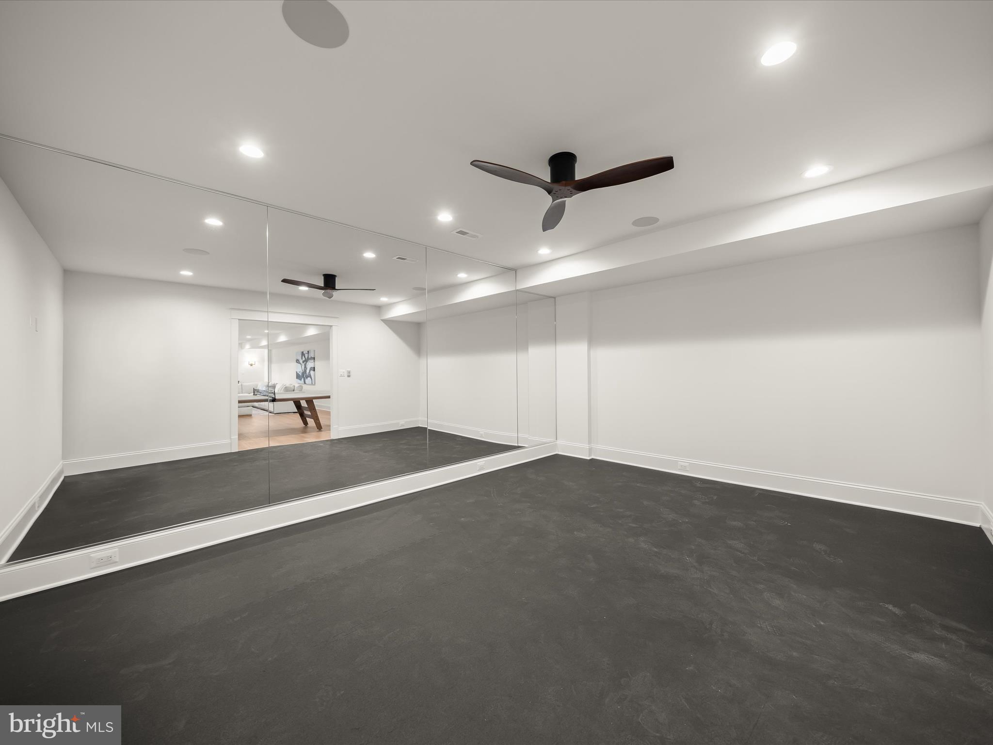 In the lower level you'll find another thoughtfully crafted space complete with a wet bar, under-counter fridge, and ice maker, ideal for casual gatherings or relaxed family nights. The lower level also includes an exercise room and a separate guest bedroom with a full bath and large finished storage space. A professionally landscaped exterior with screening trees extends your living space and provides privacy, illuminated by tasteful outdoor landscape lighting and kept lush by an integrated irrigation system.